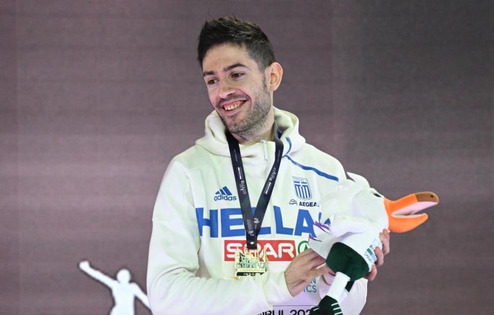 Εχοντας στο πλάι του τους Τομπίας Μόντλερ (αργυρό μετάλλιο με 8.19μ.) και Γκαμπριέλ Μπιτάν (χάλκινο μετάλλιο με 8μ.) ο 24χρονος παρέλαβε το 8ο χρυσό μετάλλιο του σε κορυφαία διοργάνωση και τρίτο σε ευρωπαϊκό κλειστού στίβου και άκουσε τον εθνικό μας ύμνο.