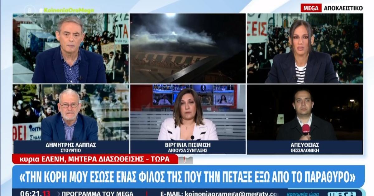 Στην εκπομπή «Κοινωνία Ώρα MEGA» μίλησε η κα Ελένη και περιέγραψε τα όσα βίωσε η κόρη της στην σύγκρουση τρένων στα Τέμπη.