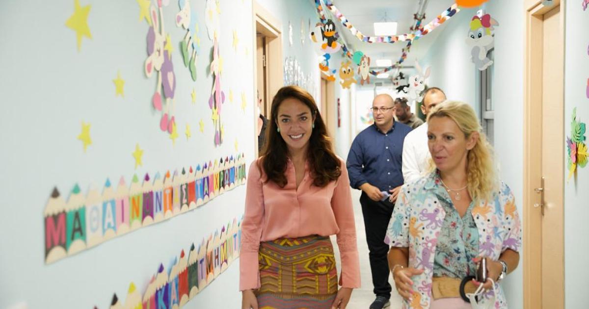 Η υφυπουργός επισκέφτηκε την μονάδα παιδικής φροντίδας «Νερομπογιές και Νότες», όπου φιλοξενούνται και απασχολούνται δημιουργικά βρέφη και νήπια. Κατά τη διάρκεια της συζήτησης που είχε με τους εργαζόμενους του σταθμού, η κ. Μιχαηλίδου τόνισε την αξία που έχει για την Πολιτεία, αλλά και για την ίδια, η προσχολική αγωγή στην εξέλιξη της ζωής κάθε παιδιού. Όπως χαρακτηριστικά ανέφερε: «Η πρόσβαση κάθε παιδιού στην προσχολική αγωγή ήταν και παραμένει πρωταρχική προτεραιότητά μας. Γι’ αυτό, καταφέραμε και εξασφαλίσαμε χρηματοδότηση 180 εκατομμυρίων ευρώ από το Ταμείο Ανάκαμψης για τον τριπλασιασμό των θέσεων σε βρεφικούς σταθμούς, ώστε από 25.000 που είναι σήμερα να γίνουν 75.000. Επιπλέον, θεσπίσαμε για πρώτη φορά, το πρόγραμμα «Κυψέλη» με στόχο να βοηθήσουμε όλα τα παιδιά να μπορούν να αναπτύξουν στο μέγιστο βαθμό τις δεξιότητες τους, αλλά και για να μπορούμε να κάνουμε έγκαιρα την πρώιμη ανίχνευση τυχόν αναπηριών ή άλλων δυσκολιών».