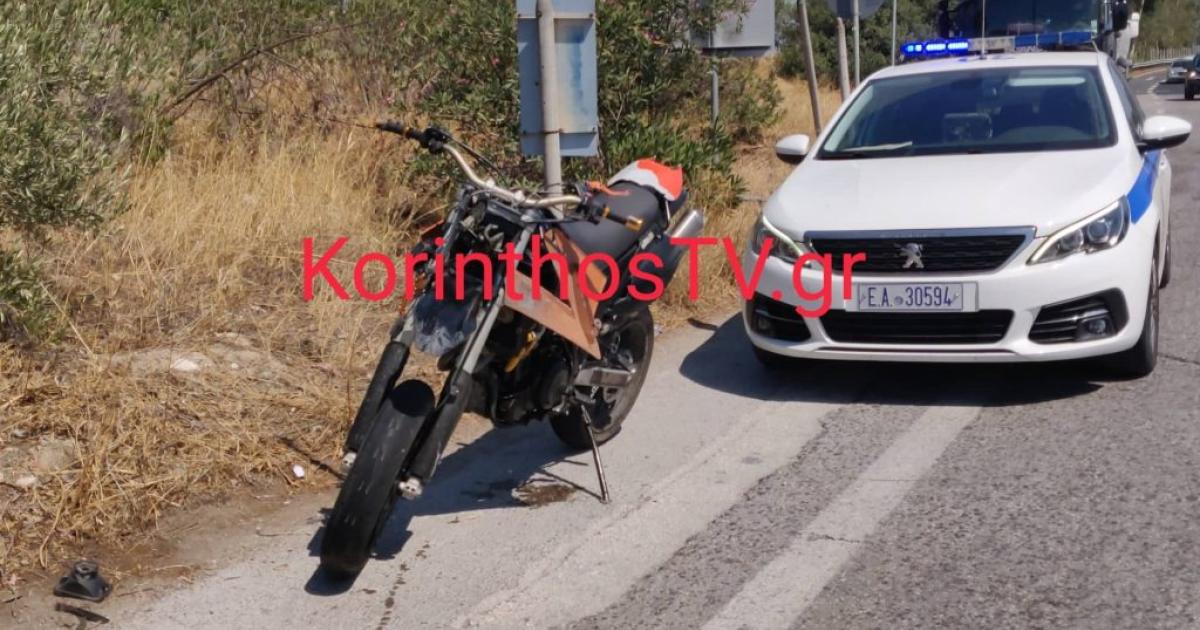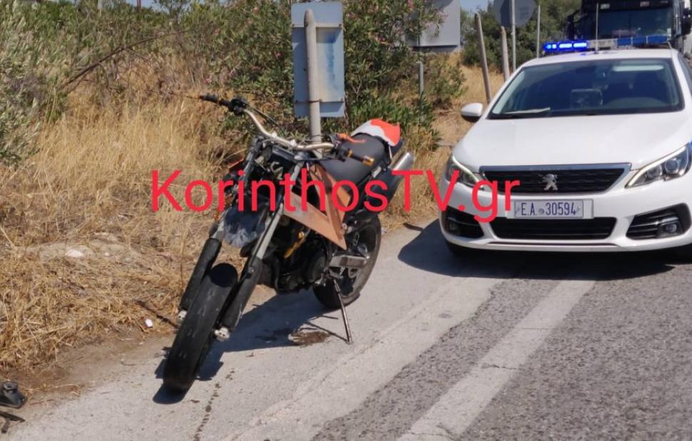 Αποτέλεσμα του ατυχήματος ήταν να τραυματιστεί ο οδηγός της μηχανής, ο οποίος μεταφέρθηκε στο νοσοκομείο Κορίνθου.