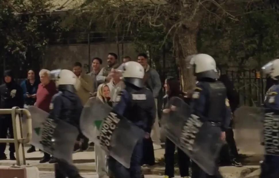Η εικόνα χαρακτηριζόταν ασυνήθιστη, καθώς ανάμεσα στους πιστούς που είχαν συγκεντρωθεί για την Ακολουθία της Αναστάσεως κινούνταν διμοιρίες των ΜΑΤ.