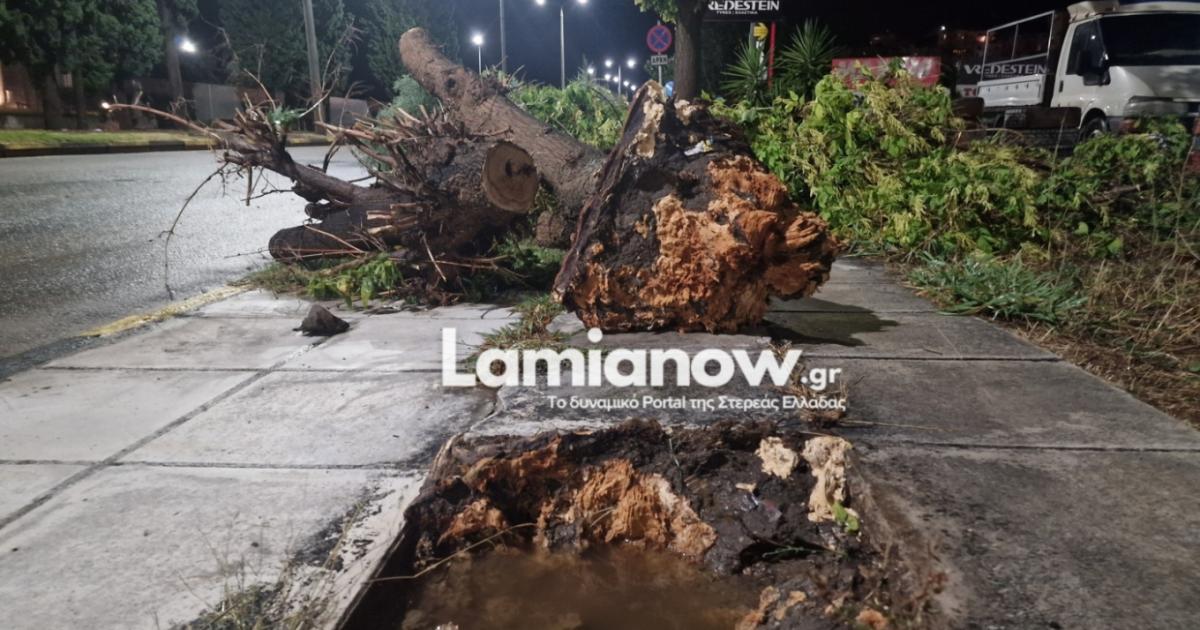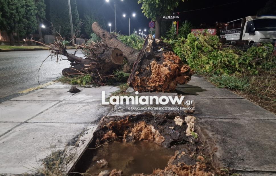 Από την νεροποντή ξεριζώθηκε ένα δέντρο στο ύψος της ΔΕΥΑΛ, αναφέρει το lamianow.gr.