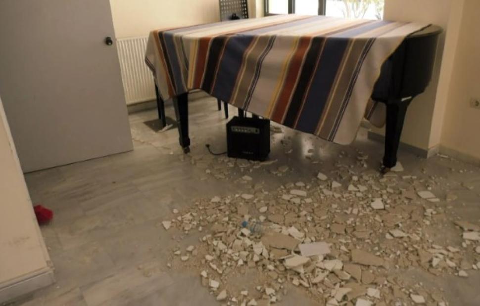 Αναστάτωση επικράτησε στο Μουσικό Σχολείο της Μυτιλήνης, όταν έπεσαν σοβάδες από το ταβάνι σε αίθουσα διδασκαλίας την ώρα που οι μαθητές έκαναν εξάσκηση σε μουσικά όργανα. Στην αίθουσα δεν βρισκόταν καθηγητής.