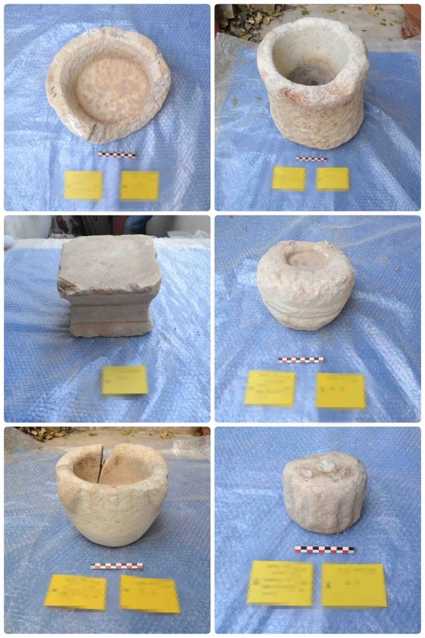 Ωστόσο, οι αστυνομικοί βρήκαν στο σπίτι 48 μαρμάρινα, πήλινα και χάλκινα αντικείμενα και 215 νομίσματα, τα οποία εξετάστηκαν από αρχαιολόγο της Εφορείας Αρχαιοτήτων Κυκλάδων που γνωμάτευσε ότι εμπίπτουν στις προστατευτικές διατάξεις του νόμου. Όλα κατασχέθηκαν για να χρονολογηθούν, να αξιολογηθούν και να εκτιμηθεί η ακριβής προέλευσή τους.