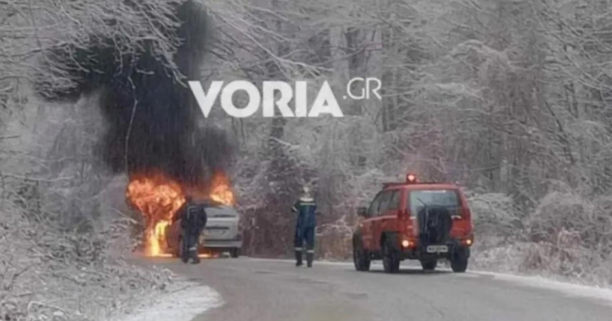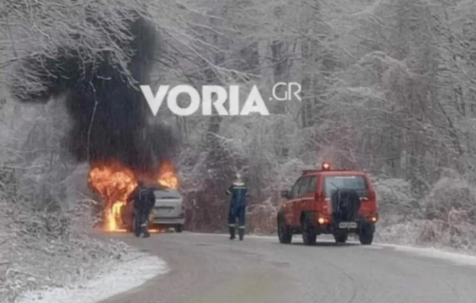 Στις φλόγες τυλίχθηκε αυτοκίνητο που βρισκόταν εν κινήσει στον δρόμο για το χιονοδρομικό κέντρο 3-5 Πηγάδια Ημαθίας, κοντά στον οικισμό Μεταμόρφωση, το μεσημέρι της Κυριακής (12/1).