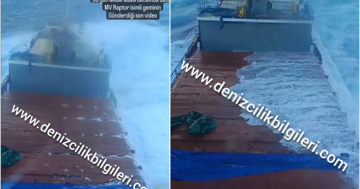 Συγκλονιστικό βίντεο από τη στιγμή που το εμπορικό πλοίο «Raptor» βυθίζεται στα ανοιχτά της Λέσβου δημοσίευσε τουρκική ιστοσελίδα.