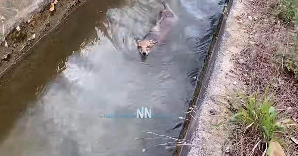 Η αλεπού έπεσε μέσα σε αύλακα νερού και κάτοικος χωριού στη Ναυπακτία κατάφερε να την απεγκλωβίσει.