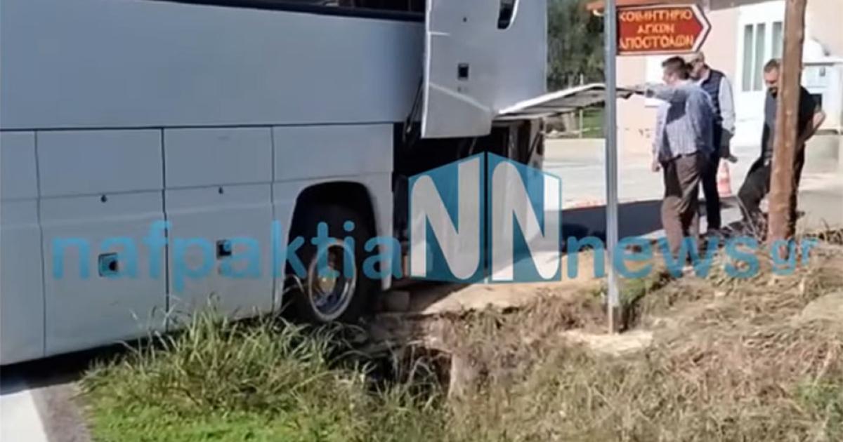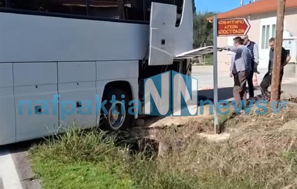 Λεωφορείο που μετέφερε παιδιά προς εκπαιδευτικό κέντρο της περιοχής εξετράπη της πορείας του και έπεσε σε χαντάκι, με αποτέλεσμα να κλείσει ο δρόμος μετά το στενό στην οδό Θέρμου, στη Ναύπακτο.