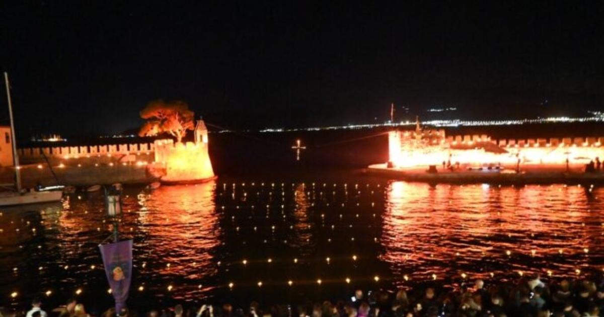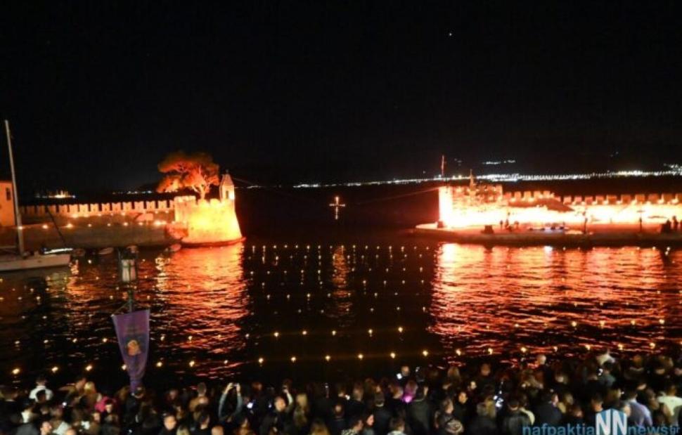 Εντυπωσιακές εικόνες στη Ναύπακτο πριν και κατά την περιφορα των δύο Επιταφίων που ξεκίνησαν από τον Ιερό Μητροπολιτικό Ναό Αγίου Δημητρίου και τον Ιερό Ναό Αγίας Παρασκευής για να κατευθυνθούν στο Ενετικό Λιμάνι της πόλης. Εκεί, είχαν ήδη ανάψει οι φωτιές στις πολεμίστρες του Λιμανιού και στο νερό, ενώ ο μεγάλος φλεγόμενος σταυρός στη μπούκα του Λιμανιού έκανε το σκηνικό ακόμη πιο επιβλητικό.