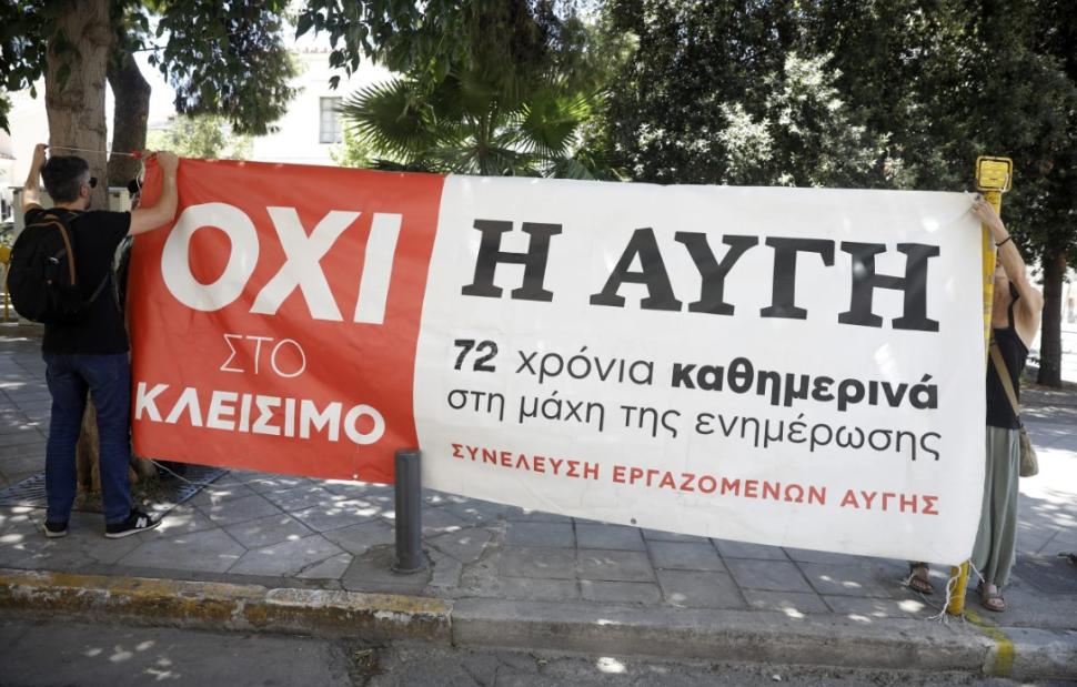 Νέα συγκέντρωση διαμαρτυρίας πραγματοποιούν οι εργαζόμενοι της εφημερίδας «Αυγή» έξω από τα γραφεία του ΣΥΡΙΖΑ στην Κουμουνδούρου, όπου συνεδριάζει η Πολιτική Γραμματεία.
