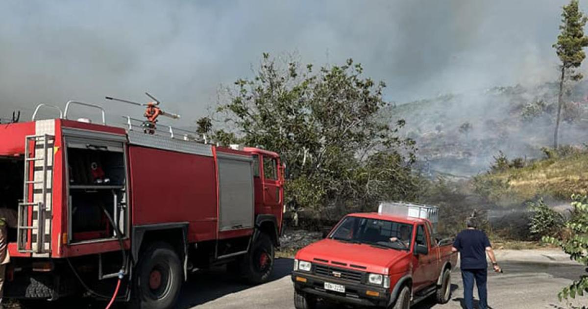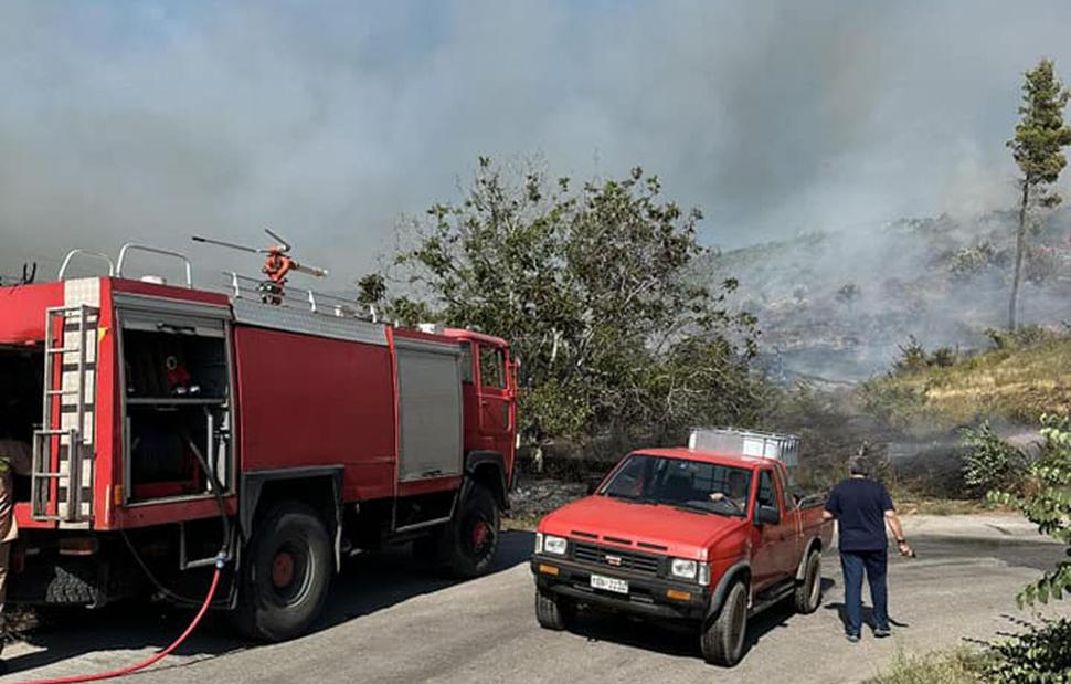 Σύμφωνα με τις πληροφορίες, η φωτιά είναι αγροτοδασική, ειδικότερα καίει ξερά χόρτα κοντά στο γήπεδο του χωριού.
