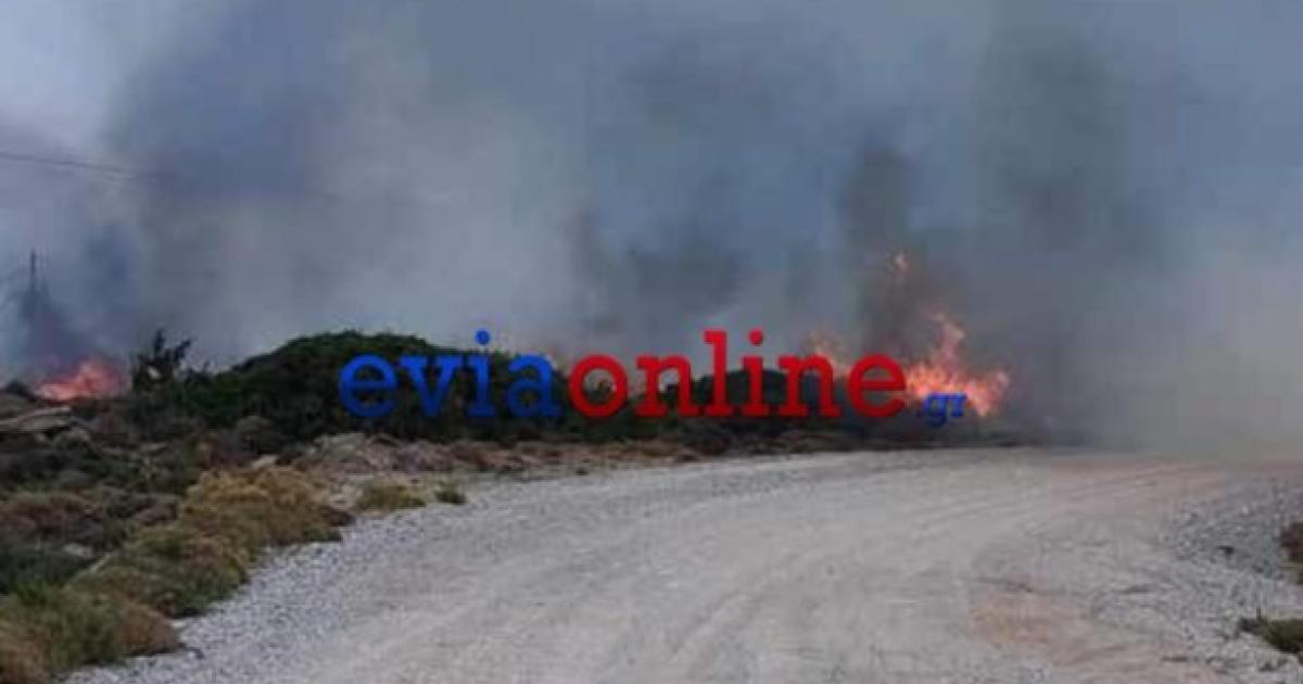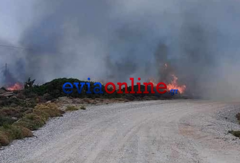 Η φωτιά έχει πάρει έκταση στην περιοχή Κάψαλα προς Πόρτο Λάφια, ενώ στο σημείο πνέουν ισχυροί άνεμοι, σύμφωνα με το eviaonline.