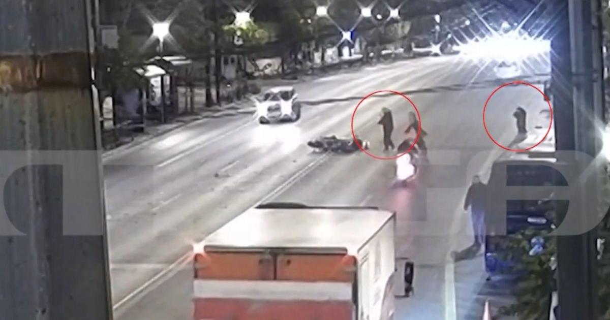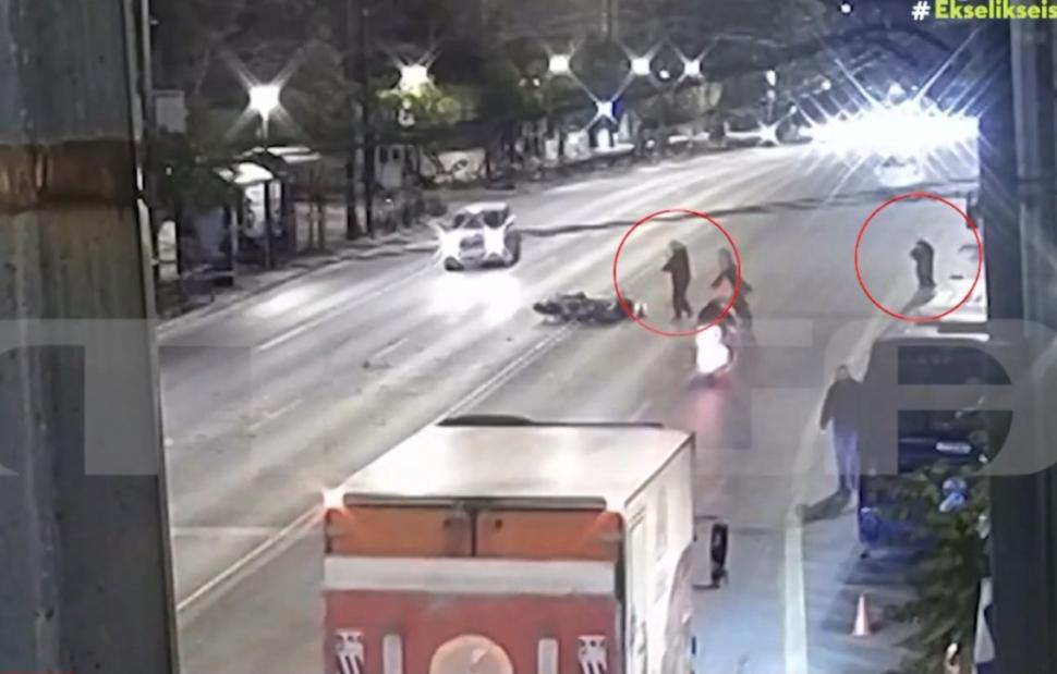 Η κυκλοφορία σταματά. Ένας ακόμη αυτόπτης μάρτυρας πλησιάζει τον 63χρονο, σκύβει από πάνω του και προσπαθεί να δει αν έχει της αισθήσεις του. Την ίδια ώρα, κάποιοι σηκώνουν και απομακρύνουν τη μηχανή του αστυνομικού.