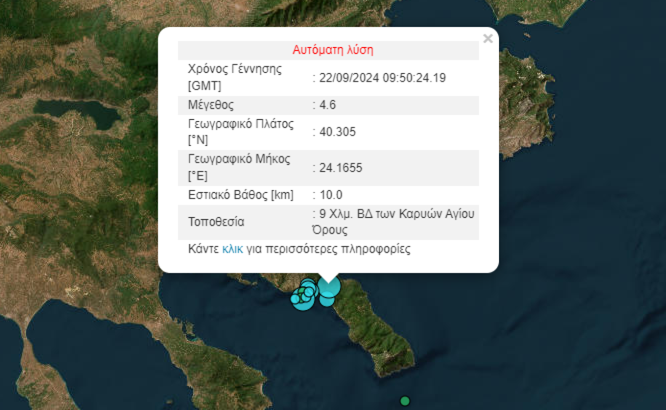 Έντονη είναι η σεισμική δραστηριότητα τις τελευταίες ώρες στο Άγιο Όρος, με τον πιο ισχυρό από αυτούς να καταγράφεται στις 12:50 και να είναι της τάξης των 4,6 Ρίχτερ.