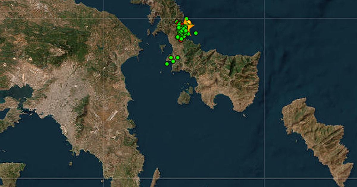 Η ισχυρή σεισμική δόνηση, 5 βαθμών της κλίμακας Ρίχτερ, σημειώθηκε στις 22:06 στο νότιο τμήμα της Εύβοιας, σύμφωνα με το Ενιαίο Εθνικό Σεισμολογικό Δίκτυο του Γεωδυναμικού Ινστιτούτου του Εθνικού Αστεροσκοπείου Αθηνών.