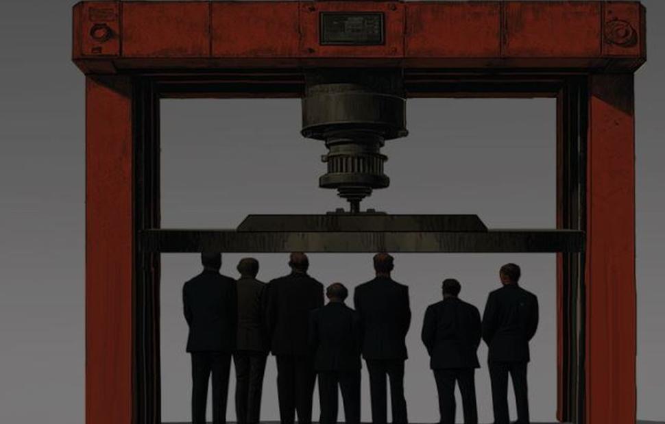 Ο διάσημος καλλιτέχνης σκιτσάρει μία μέγγενη κάτω από την οποία πιέζονται ανθρώπινες φιγούρες. Το σχόλιο που συνoδεύει το σκίτσο είναι ξεκάθαρο αν και δε γίνεται σαφές σε ποιο γεγονός της πρόσφατης επικαιρότητας αναφέρεται. Το σίγουρο είναι ότι μπορεί να παραπέμψει σε πολύ περισσότερες από μία περιπτώσεις που χαρακτηρίζουν τη σύγχρονη ελληνική κοινωνία.