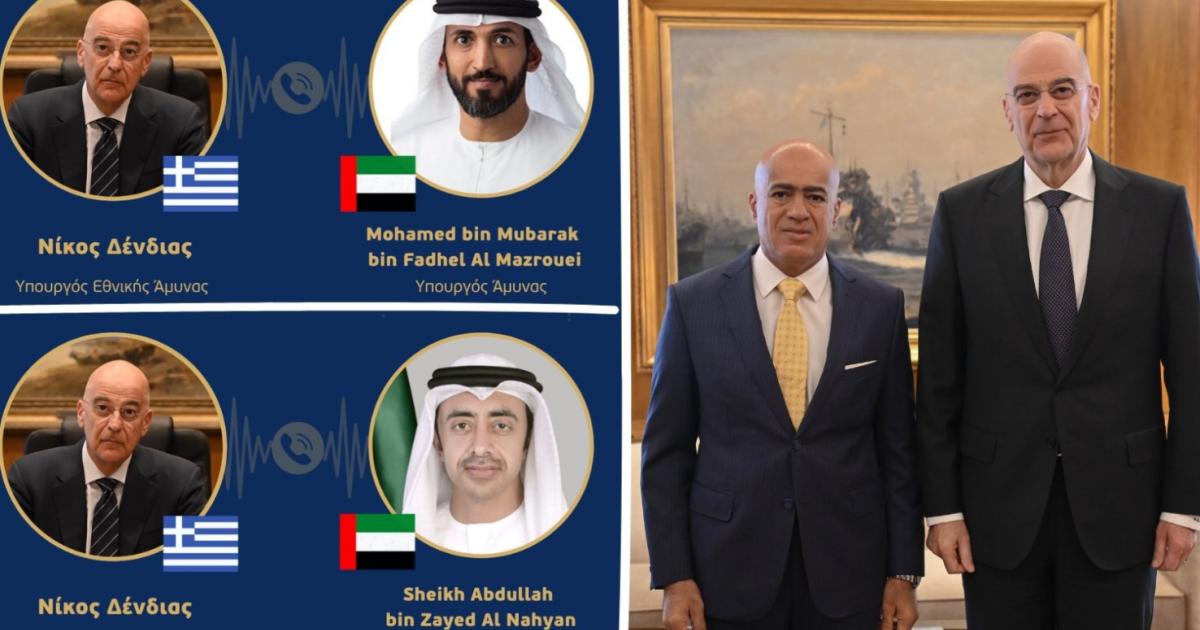 Τηλεφωνική επικοινωνία με τον υπουργό Άμυνας και τον υπουργό Εξωτερικών των Ηνωμένων Αραβικών Εμιράτων (ΗΑΕ) είχε ο Νίκος Δένδιας.