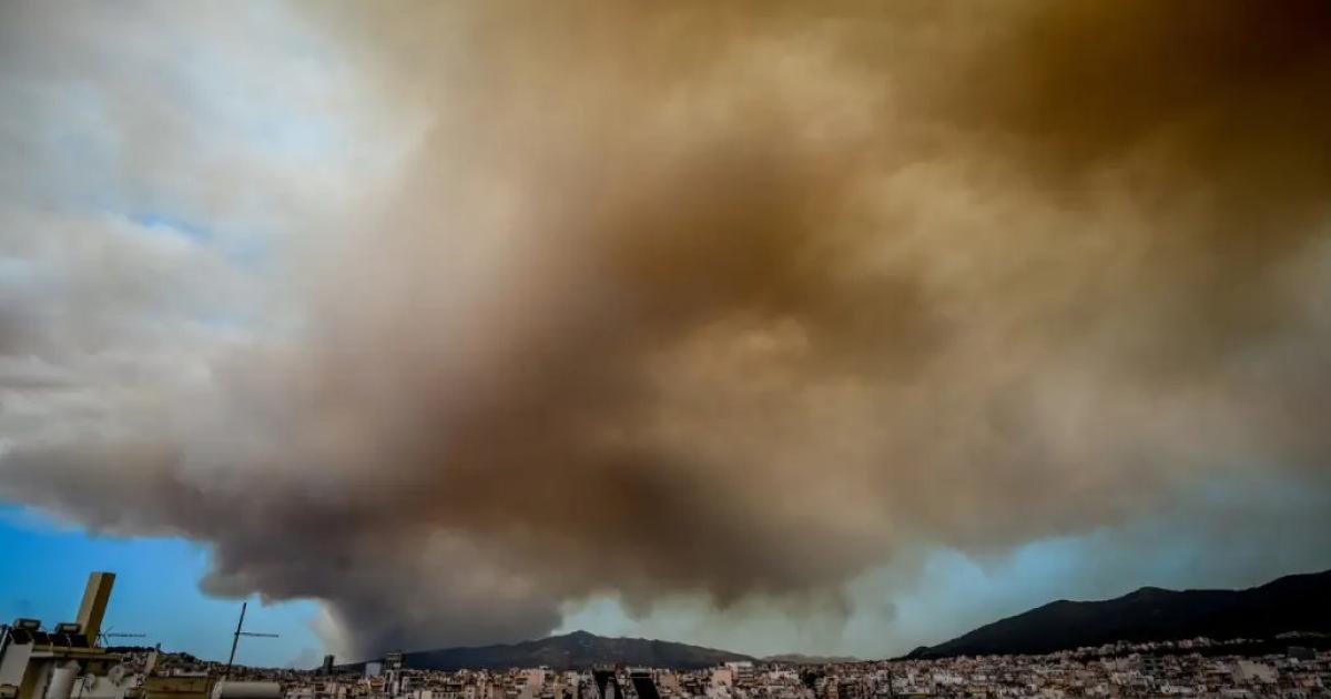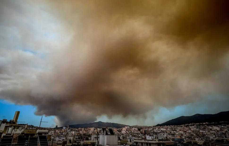 Χαρακτηριστικό της μεγάλης φωτιάς στη βορειοανατολική Αττική και των δυνατών ανέμων είναι ότι ο καπνός έχει διανύσει 300 χιλιόμετρα.
