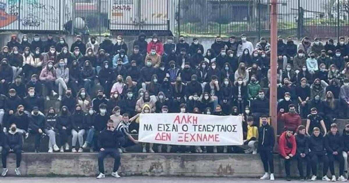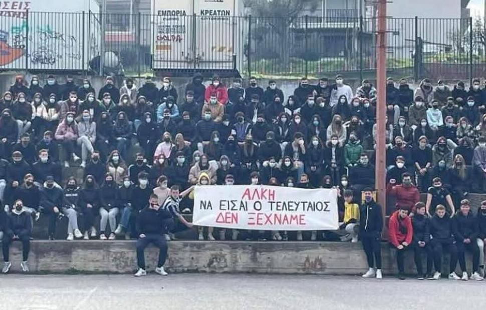 Κι οι μαθητές του 1ου Γυμνασίου Συκεών Θεσσαλονίκης είχαν στείλει το δικό τους γράφοντας σ' ένα πανό: «Άλκη να είσαι ο τελευταίος, δεν ξεχνάμε». Το πανό κρατούσαν ένας μαθητής με φανέλα του Άρη και ένας άλλος με φανέλα του ΠΑΟΚ. Κι όπως αποκαλύφθηκε, εκείνος με τη φανέλα του ΠΑΟΚ ήταν ο 20χρονος Κλεομένης, ο οποίος δολοφονήθηκε στην Καλαμαριά την περασμένη εβδομάδα.
