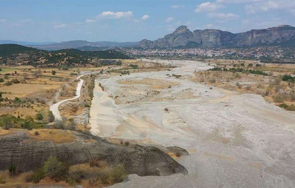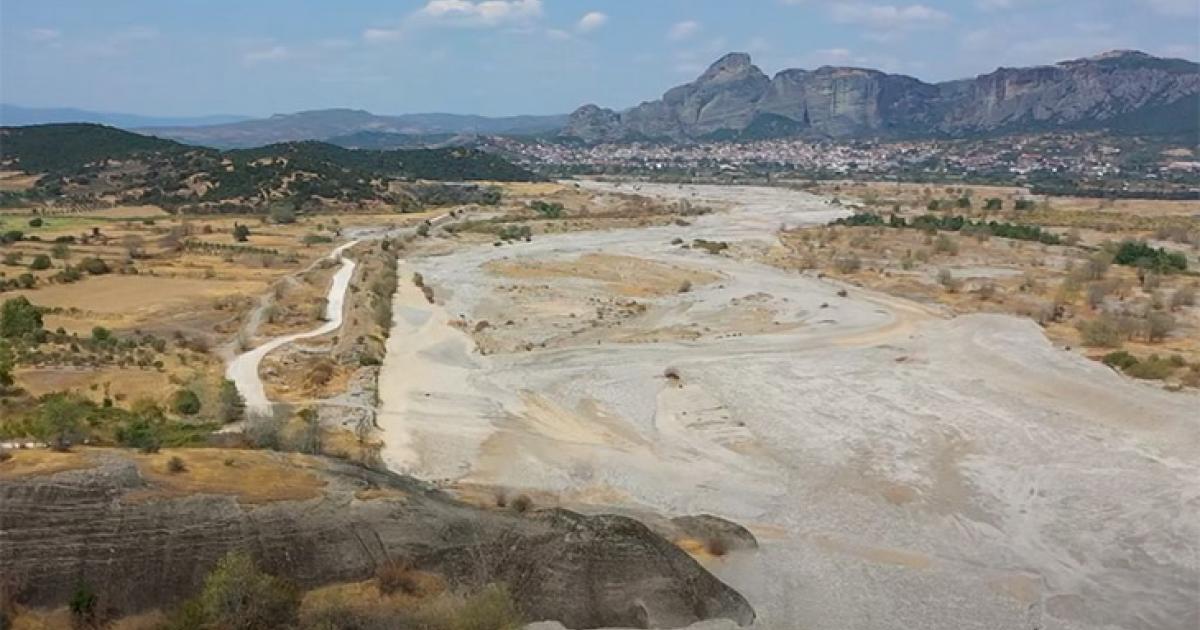 Εκατοντάδες στρέμματα στην κοίτη του ποταμού Πηνειού θυμίζουν έρημο καθώς το ποτάμι έχει στερέψει από νερό.