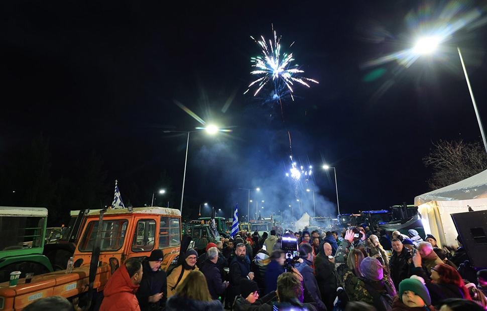 Αλλαγή χρονιάς στο μπλόκο της Νίκαιας με τα τρακτέρ στολισμένα και τις ανταλλαγές ευχών μεταξύ των αγροτών να κυριαρχούν. Μαζί με πολλούς αγρότες βρίσκονταν και οι οικογένειές τους για να υποδεχθούν το 2026 όλοι μαζί, ενώ κάποια παιδιά πιο τολμηρά… είπαν κάλαντα και τραγούδια.