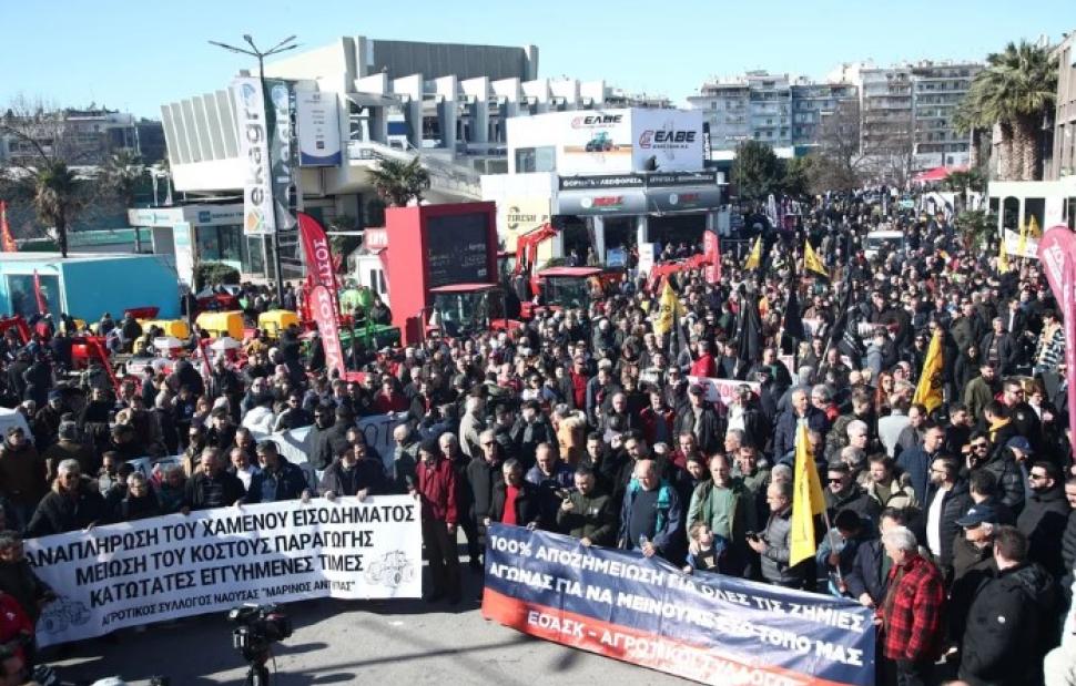 Ολοκληρώθηκε το συλλαλητήριο που πραγματοποίησαν αγρότες και εκπρόσωποι άλλων κλάδων του πρωτογενούς τομέα, στον χώρο του Διεθνούς Εκθεσιακού Κέντρου Θεσσαλονίκης, όπου διεξάγεται η 30η Agrotica.