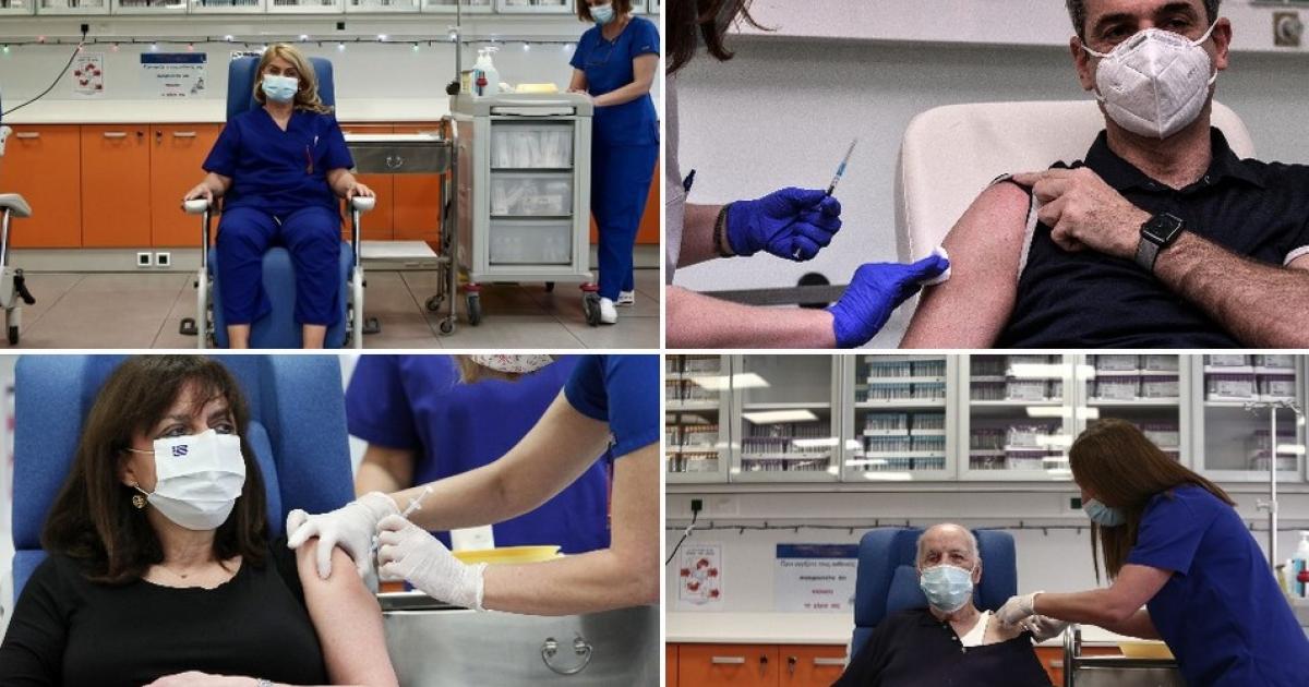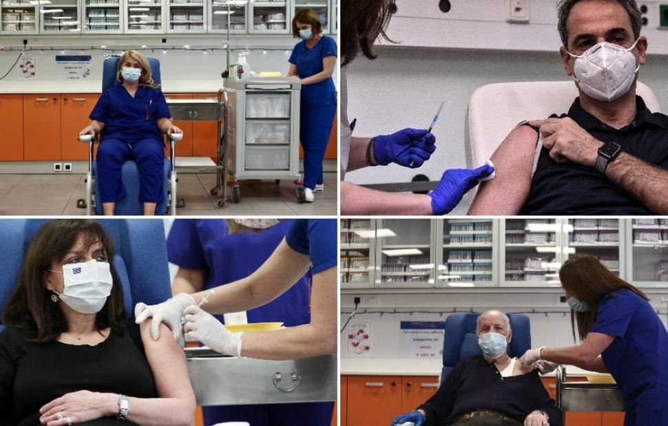 Η Πρόεδρος της Δημοκρατίας Κατερίνα Σακελλαροπούλου, ο Πρωθυπουργός Κυριάκος Μητσοτάκης, η νοσηλεύτρια Ευσταθία Καμπισιούλη, ο 88χρονος Μιχάλης Γιοβανίτης και ο καθηγητής Σωτήρης Τσιόδρας είναι οι πρώτοι Έλληνες που εμβολιάστηκαν κατά του κορωνοϊού. Όπως είπε και ο Πρωθυπουργός στο μήνυμα ενότητας που απηύθυνε, «το εμβόλιο είναι ο μόνος τρόπος να πάρουμε τις ζωές μας στα χέρια μας».