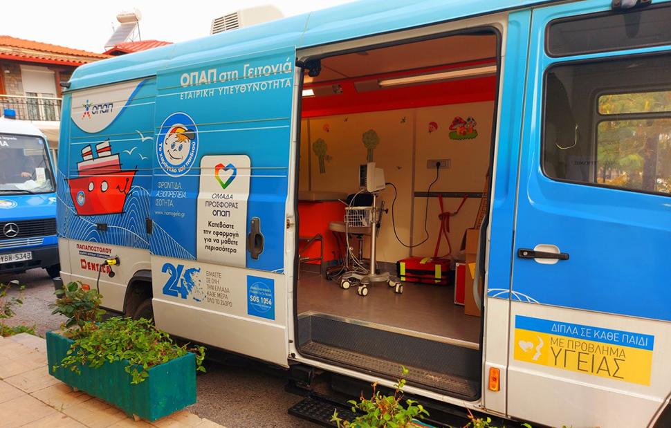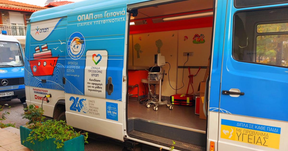 To πρόγραμμα προληπτικής ιατρικής ΟΠΑΠ στη Γειτονιά, το οποίο ταξιδεύει σε όλη την Ελλάδα παρέχοντας δωρεάν διαγνωστικές εξετάσεις σε ενήλικες και παιδιά, υλοποιείται με τη συνδρομή των κατά τόπους Ιατρικών και Οδοντιατρικών Συλλόγων.