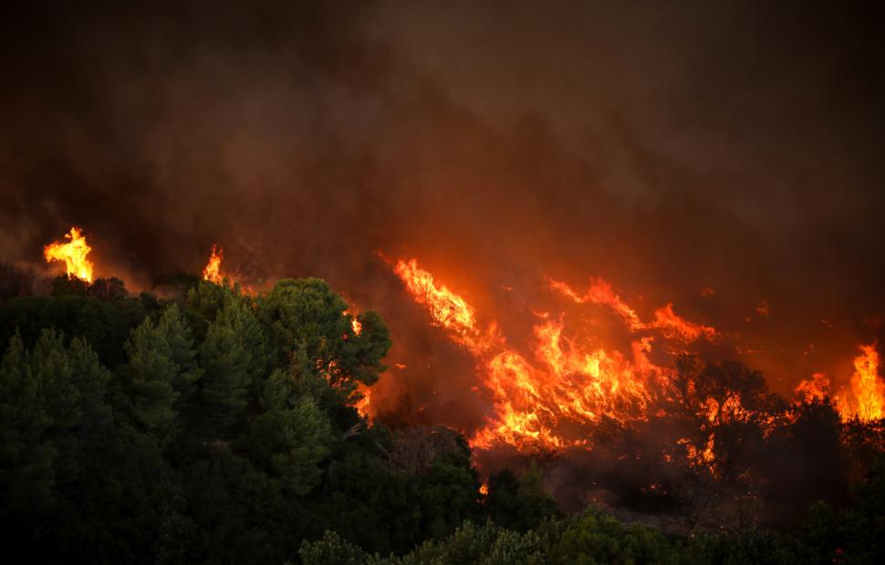 Σύμφωνα με την Πυροσβεστική, η πυρκαγιά επεκτάθηκε προς τα βόρεια, στον ορεινό όγκο και έκαψε πουρνάρια.