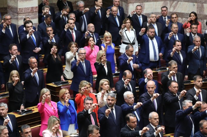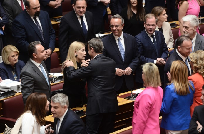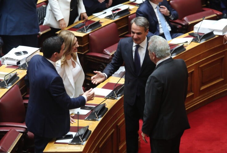 Στα έδρανα των βουλευτών της ΝΔ δίπλα-δίπλα επέλεξαν να καθίσουν η Ντόρα Μπακογιάννη με τον Δημήτρη Αβραμόπουλο, ο Μάκης Βορίδης με την Νίκη Κεραμέως και ο Θάνος Πλεύρης με τον 'Αδωνη Γεωργιάδη.