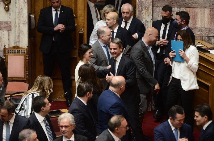 Ο πρόεδρος της ΝΔ, Κυριάκος Μητσοτάκης, πριν πάρει τη θέση του στα πρώτα κοινοβουλευτικά έδρανα, πέρασε από τα έδρανα πολλών βουλευτών της ΝΔ και τους συνεχάρη προσωπικά.