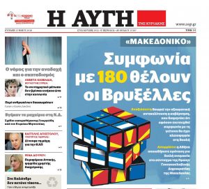 Πολιτικό σεισμό πρόκειται να προκαλέσει δημοσίευμα της Αυγής της Κυριακής, σύμφωνα με το οποίο το Μαξίμου συζητά το ενδεχόμενο να ζητήσει από την Βουλή υπερψήφιση της συμφωνίας με τα Σκόπια από 180 Βουλευτές!