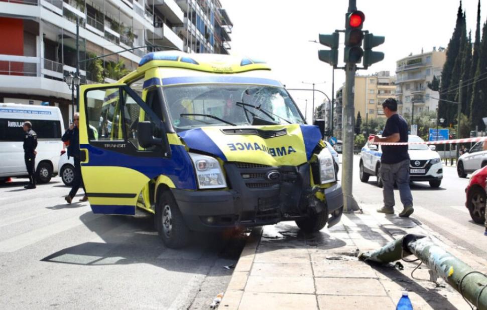 Πληροφορίες αναφέρουν ότι ιδιωτικό ασθενοφόρο που κινούνταν επί της λεωφόρου Βασιλέως Κωνσταντίνου με κατεύθυνση προς Χίλτον, συγκρούστηκε με όχημα που εξήλθε από την οδό Βασιλέως Γεωργίου Β’, ερχόμενο από το Παγκράτι. Από τη σύγκρουση, το ασθενοφόρο εξετράπη της πορείας του και προσέκρουσε σε κολώνα φωτισμού στη νησίδα.