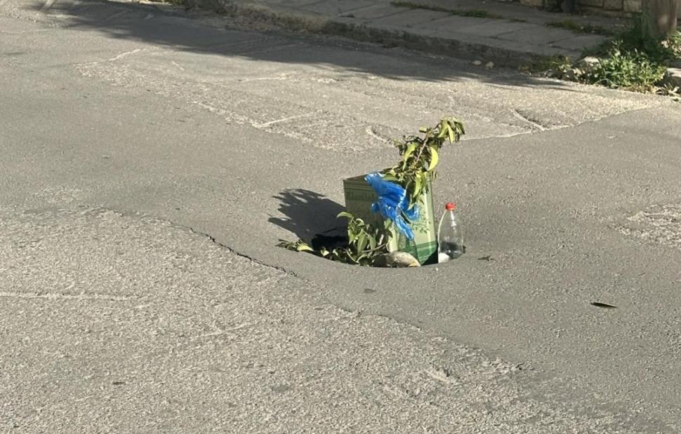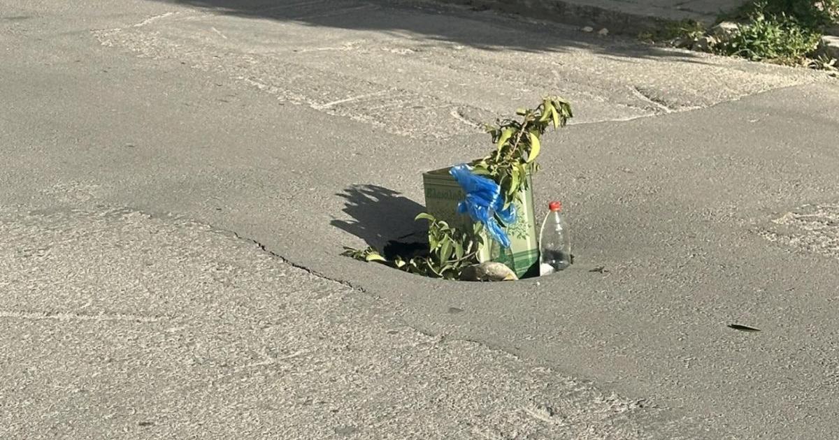 Όπως φαίνεται και στη φωτογραφία έχει ανοίξει μια τρύπα στον δρόμο και από χθες οι κάτοικοι είχαν διάφορα αντικείμενα για να μην πέσει κάποιο διερχόμενο αυτοκίνητο.