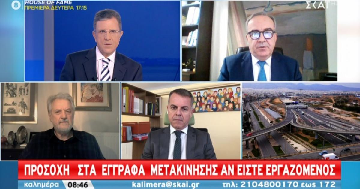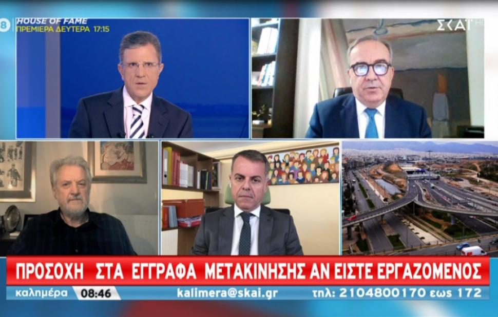 Για τις μετακινήσεις και τις νέες βεβαιώσεις για τους εργαζόμενους τόνισε ότι θα υπάρξει μια μεταβατική περίοδος ωστόσο όλοι θα πρέπει να είναι προσεκτικοί και να προμηθευτούν τα νέα έγγραφα που απαιτούνται.