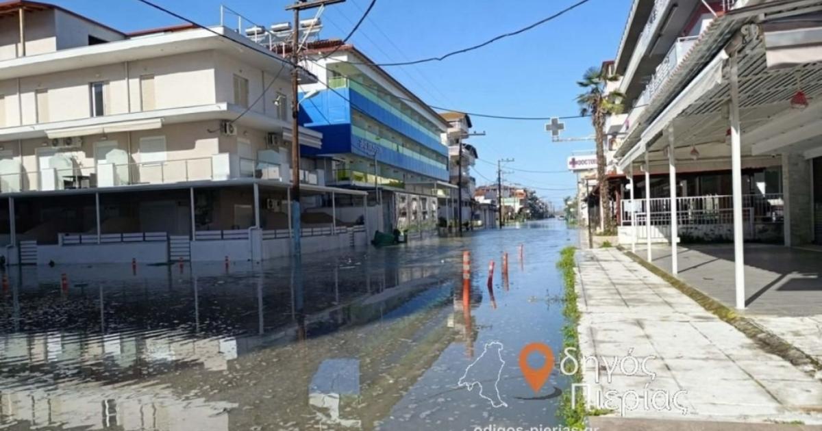 Πλημμύρισε όλο το παραλιακό τμήμα της Κατερίνης Από την θάλασσα που βγήκε έξω λόγω των θυελλωδών ανέμων.