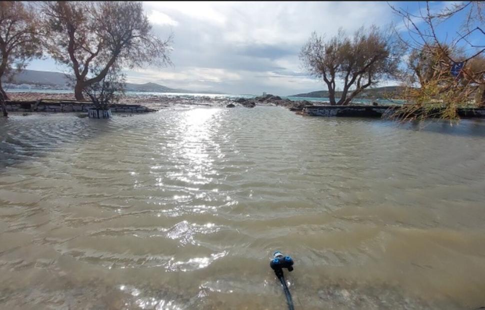 Ισχυροί άνεμοι έπληξαν την Πάρο, προκαλώντας προβλήματα. Οι θυελλώδεις νοτιάδες και η παλίρροια προκάλεσαν ζημιές στην περιοχή της Ζωοδόχου Πηγής στην Παροικιά, καθώς θάλασσα και στεριά ουσιαστικά έγιναν ένα, σύμφωνα με το psts.gr.