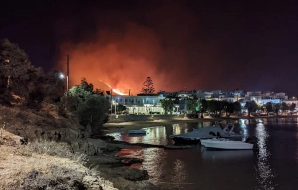 Μεγάλη φωτιά εκδηλώθηκε χθες λίγο μετά τις 9:30 το βράδυ στην Πάρο. Η πυρκαγιά που προκλήθηκε από άγνωστη μέχρι στιγμής αιτία ξεκίνησε στους πρόποδες του Αγίου Αντωνίου, κοντά στο μοναστήρι από την πλευρά του Μώλου και του Καλόγερου, και στη συνέχεια κινήθηκε με κατεύθυνση το Πίσω Λιβάδι της Πάρου.