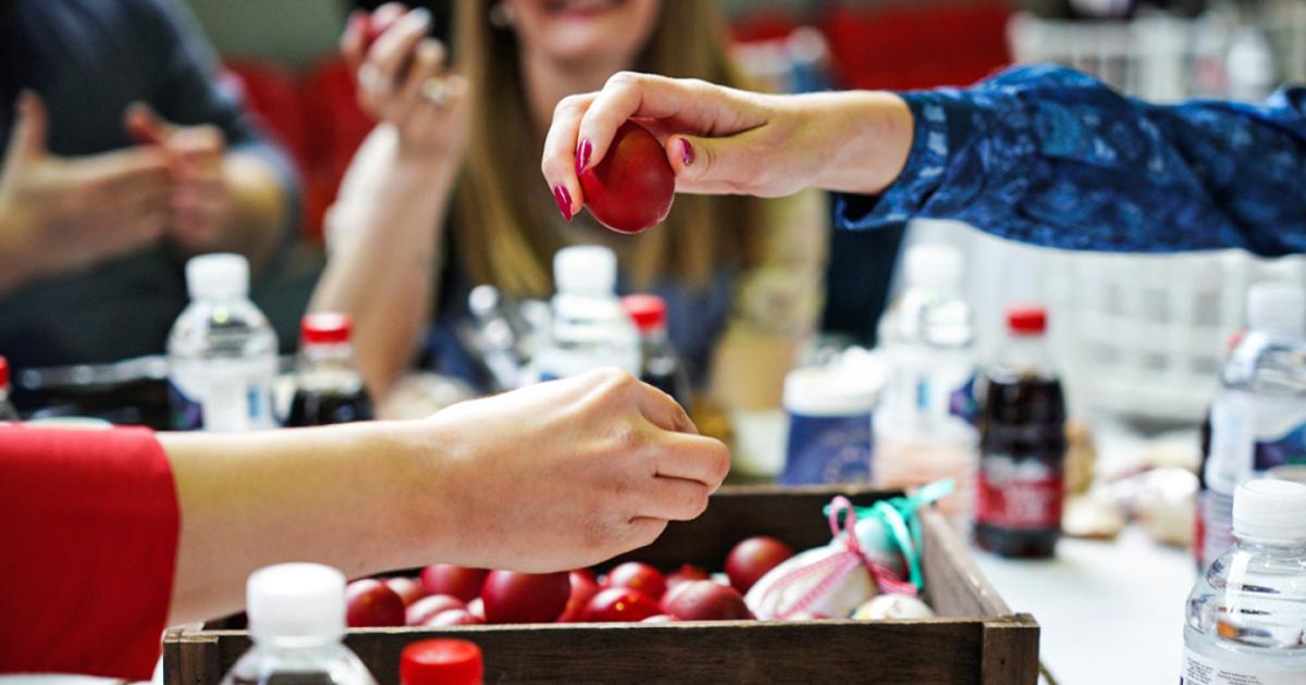 Στο πασχαλινό τραπέζι κυριαρχεί η μαγειρίτσα, το ψητό αρνί, το κόκκινο αυγό και το λαμπρόψωμο ή λαμπροκουλούρα. Το τσούγκρισμα των κόκκινων αυγών συμβολιζει τη γέννηση. Όπως σπάει το τσόφλι και βγαίνει μία νέα ύπαρξη στο φως, έτσι για τους χριστιανούς συμβολίζει την Ανάσταση του Χριστού.
