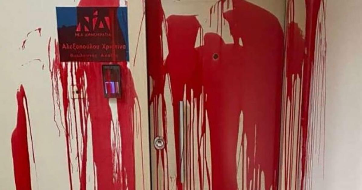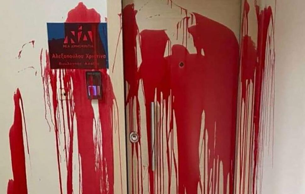 Επίθεση με μπογιές σημειώθηκε από αγνώστους στο πολιτικό γραφείο της βουλευτή Αχαΐας της Νέας Δημοκρατίας, Χριστίνας Αλεξοπούλου στην Πάτρα.