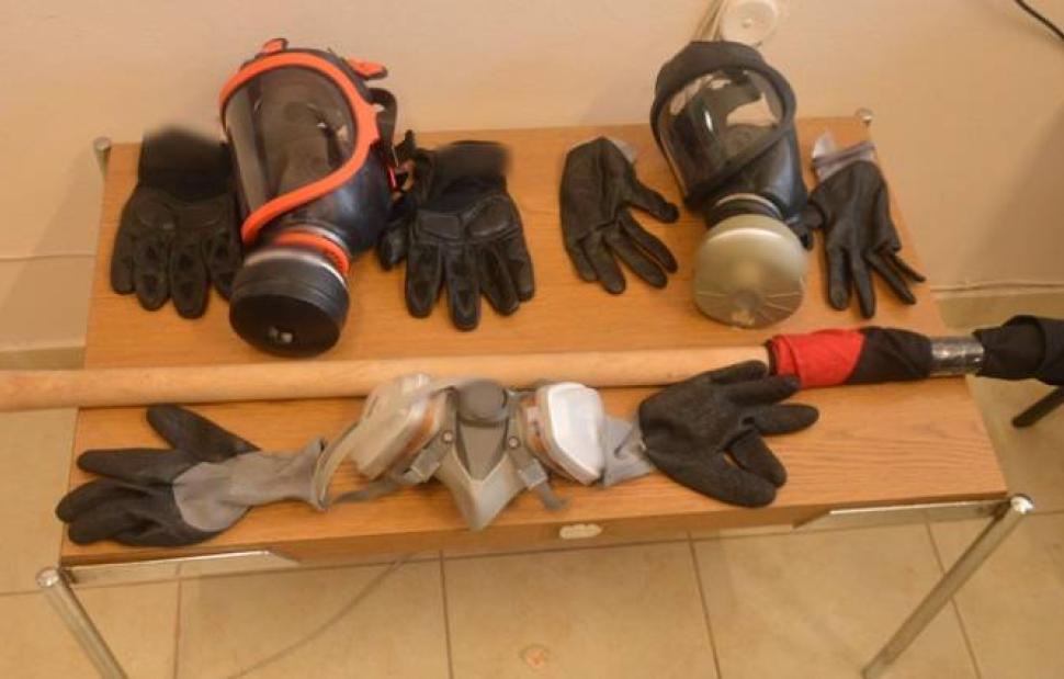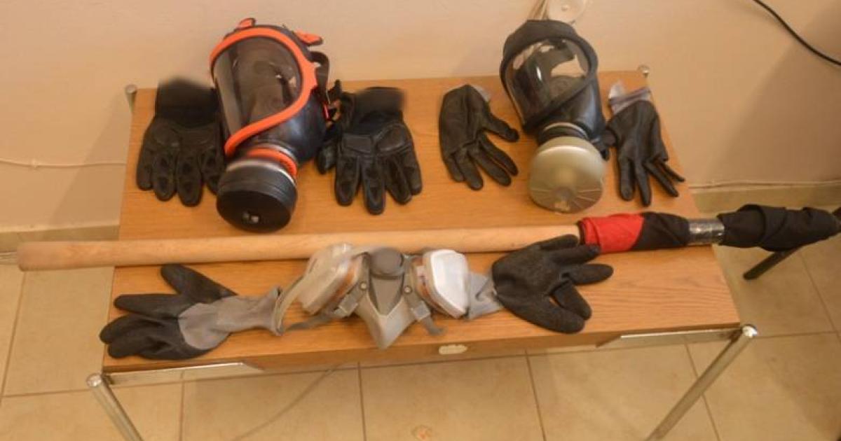 Στην κατοχή των συλληφθέντων οι αστυνομικοί βρήκαν και κατέσχεσαν ένα ξύλινο ρόπαλο, αντιασφυξιογόνες μάσκες και γάντια.