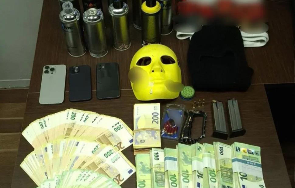 Επιπλέον, στην οικία ενός εξ αυτών, βρέθηκαν και κατασχέθηκαν 2 γεμιστήρες με συνολικά 36 φυσίγγια, 7 φυσίγγια αδράνειας, 2αβολίδωτα φυσίγγια, καθώς και το χρηματικό ποσό των 302.190 ευρώ, τα οποία διαπιστώθηκε ότι ανήκουν στον πατέρα του ο οποίος συνελήφθη.