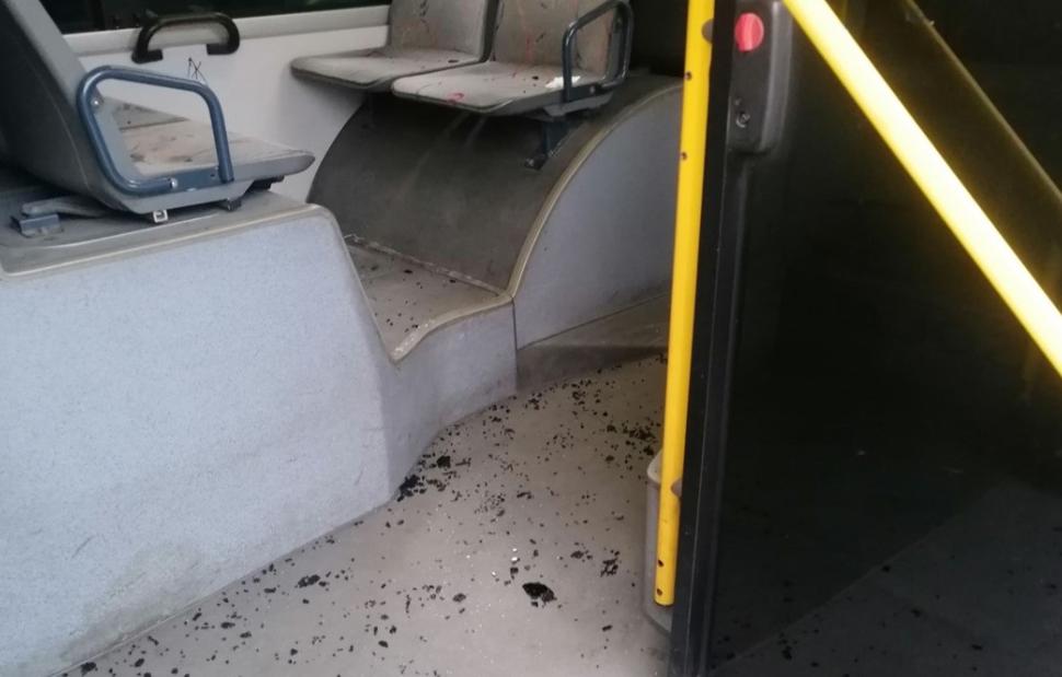 Αμέσως μετά, ένας εκ των δύο έπιασε μία πέτρα και την πέταξε σπάζοντας ένα παράθυρο του λεωφορείου.