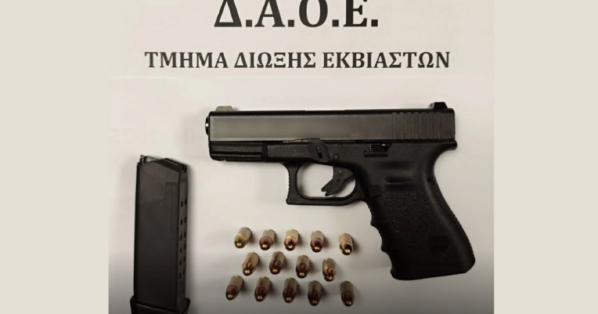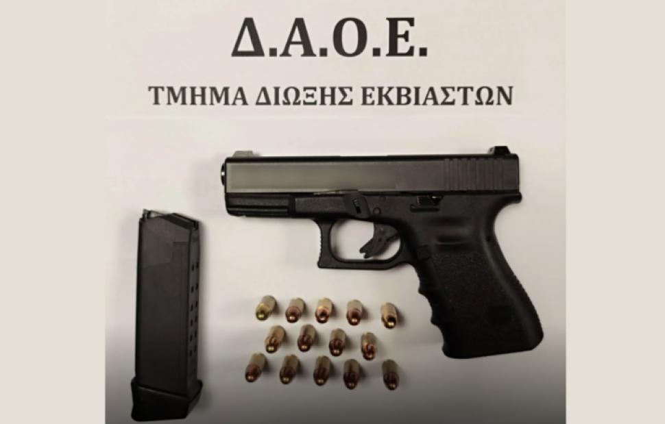 Στο πλαίσιο αυτό, εντοπίστηκε ο κατηγορούμενος, ο οποίος έφερε εντός τσάντας πιστόλι με γεμιστήρα που περιείχε 14 φυσίγγια, τα οποία κατασχέθηκαν.