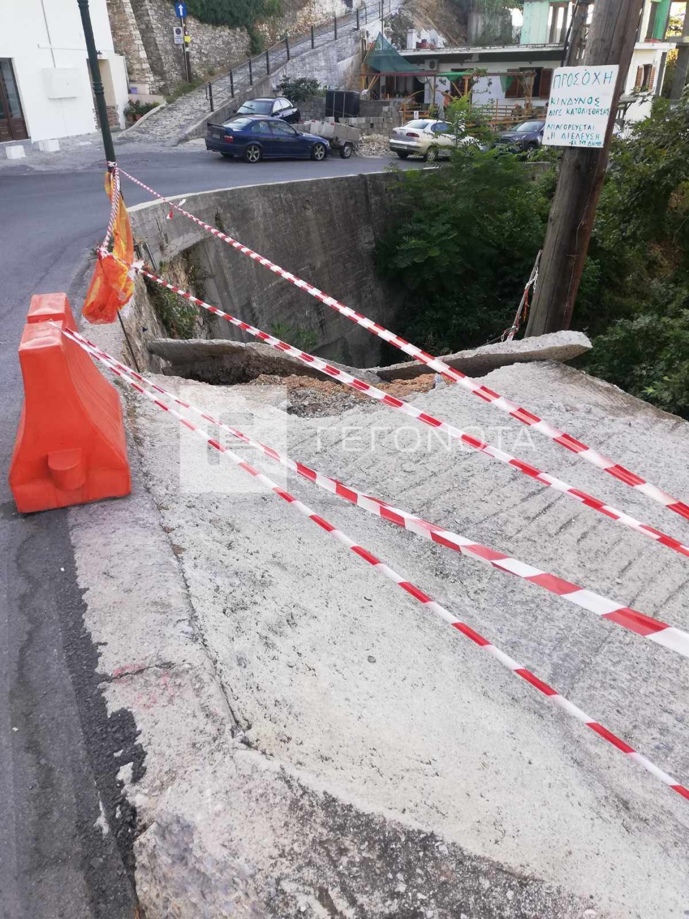 Η υποχώρηση του δρόμου έγινε στις 4:00 τα ξημερώματα του Δεκαπενταύγουστου και το τμήμα που αποκολλήθηκε έπεσε στο ρέμα. Από τύχη δεν υπάρχουν ζημιές σε 15 παρκαρισμένα αυτοκίνητα εντός του οικοπέδου του πάρκινγκ.