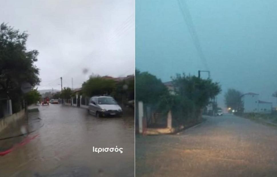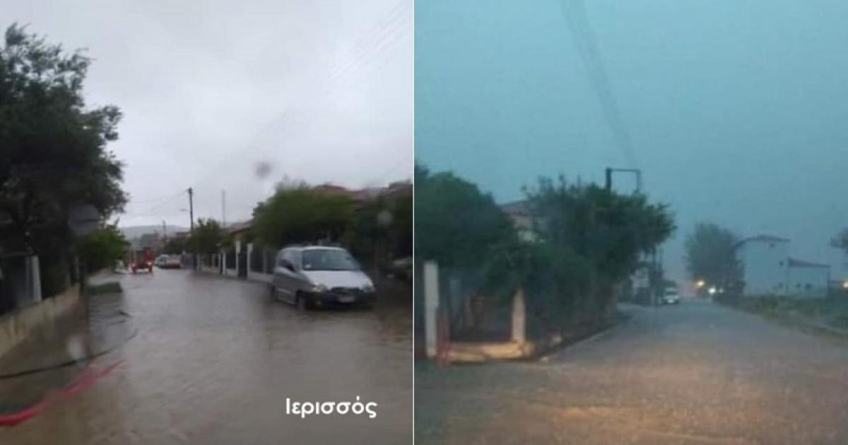 Στην Ιερισσό δρόμοι έχουν πλημμυρίσει και η Πυροσβεστική δέχτηκε αρκετές κλήσεις για αντλήσεις υδάτων σε σπίτια και υπόγεια στην είσοδο της πόλης από την πλευρά του Στρατωνίου.