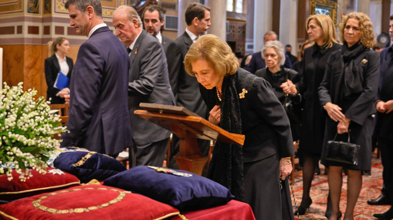 Το φέρετρο τοποθετήθηκε στο βάθρο ενώ μπροστά, σε τραπέζι και πάνω σε μπλε και κόκκινα μαξιλάρια, έχουν τοποθετηθεί τα μετάλλια του τέως βασιλιά. Οι τρεις γιοι του βασιλιά εμφανώς συγκινημένοι αποχαιρέτισαν τον πατέρα τους.
