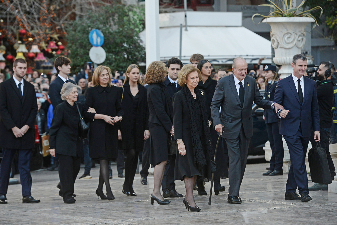 Στην εκκλησία έφτασαν σταδιακά και οι προσκεκλημένοι, που συλλυπούνται τους γιους του τέως βασιλιά, Παύλο, Φίλιππο και Νικόλαο και στη συνέχεια οδηγούνται στη θέση τους. Λίγο μετά τις 11:30 στη Μητρόπολη έφτασαν υποβασταζόμενος ο επίτιμος βασιλιάς της Ισπανίας Χουάν Κάρλος κρατώντας τη σύζυγό του και αδελφή του τέως βασιλιά Κωνσταντίνου, βασίλισσα Σοφία και τις δύο κόρες τους. Ο Νικόλαος βγήκε έξω από την εκκλησία για να τους υποδεχθεί.