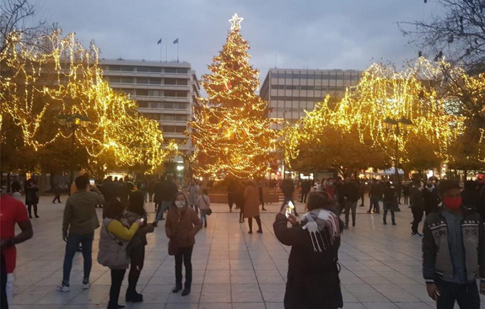 Παρά τα περιοριστικά μέτρα, πολλοί ήταν αυτοί που επέλεξαν την πλατεία Συντάγματος, όπου βρίσκεται και το χριστουγεννιάτικο δέντρο του δήμου Αθηναίων.