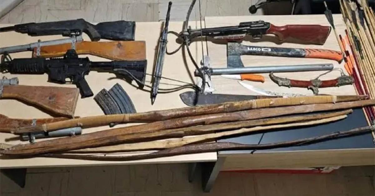 Στην κατοχή τους βρέθηκαν και κατασχέθηκαν ένα αυτοσχέδιο τυφέκιο, ένα αεροβόλο όπλο, 102 κυνηγετικά φυσίγγια, 81 σφαίρες πολεμικού όπλου, 7 αυτοσχέδια τόξα, 20 βέλη, 4 μαχαίρια και ένα τσεκούρι.